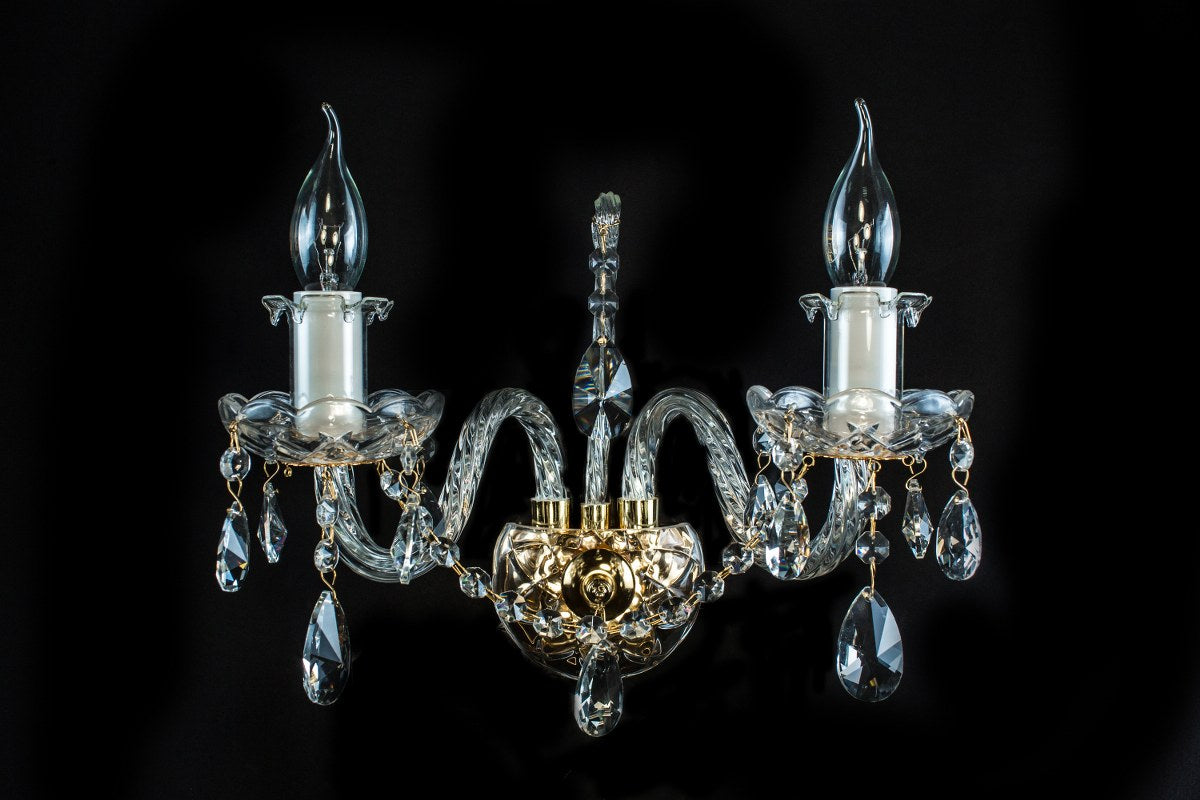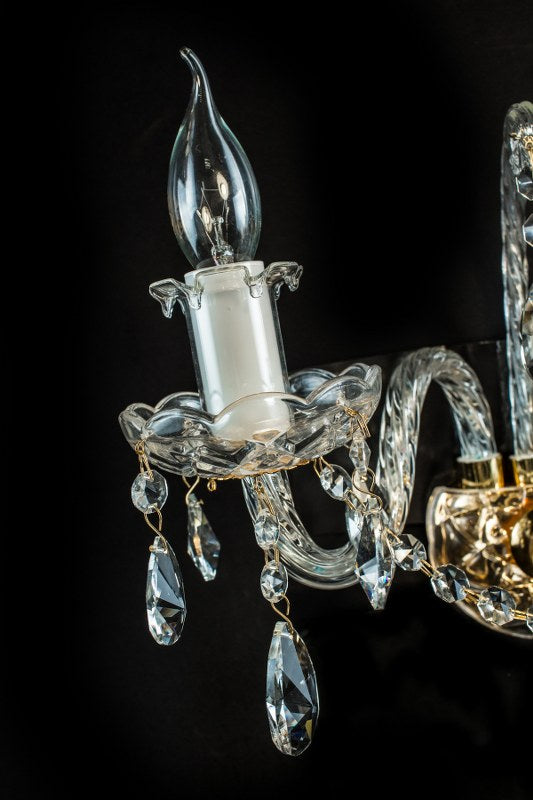 Añade un toque de lujo y elegancia a tus espacios con este aplique de pared de estilo clásico, adornado con cristales que reflejan la luz de manera espectacular.