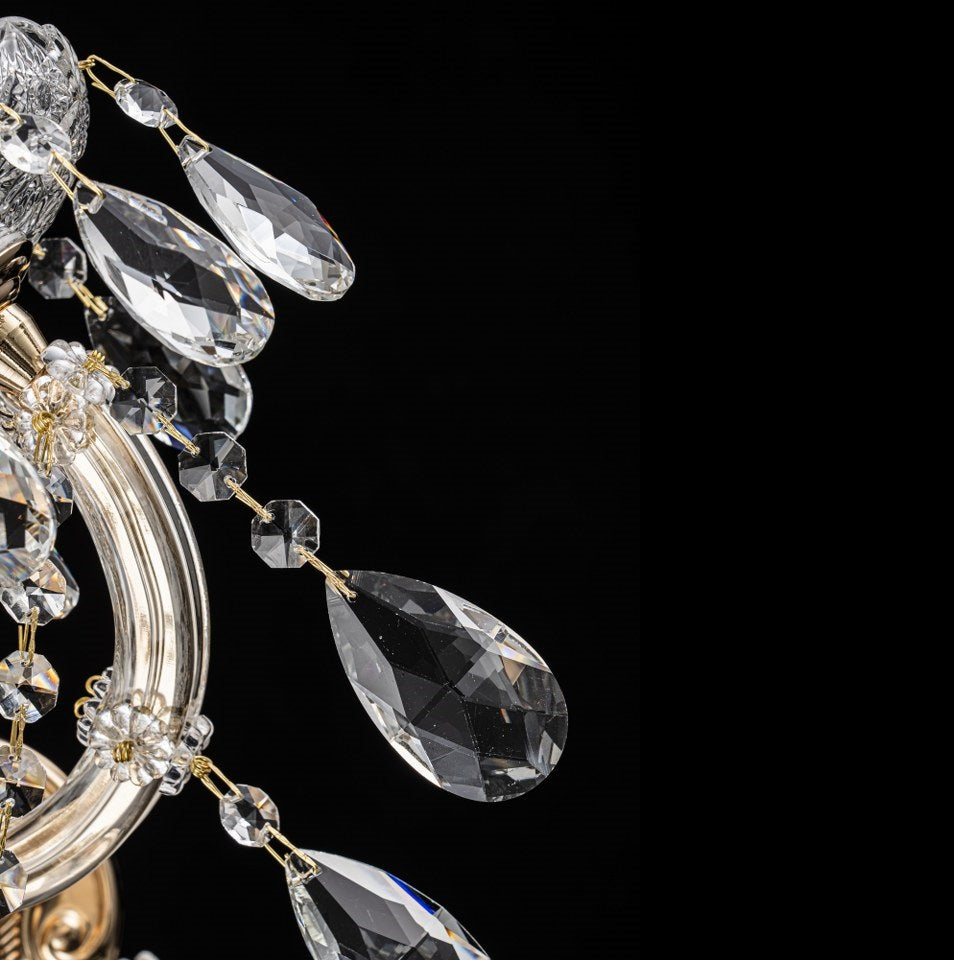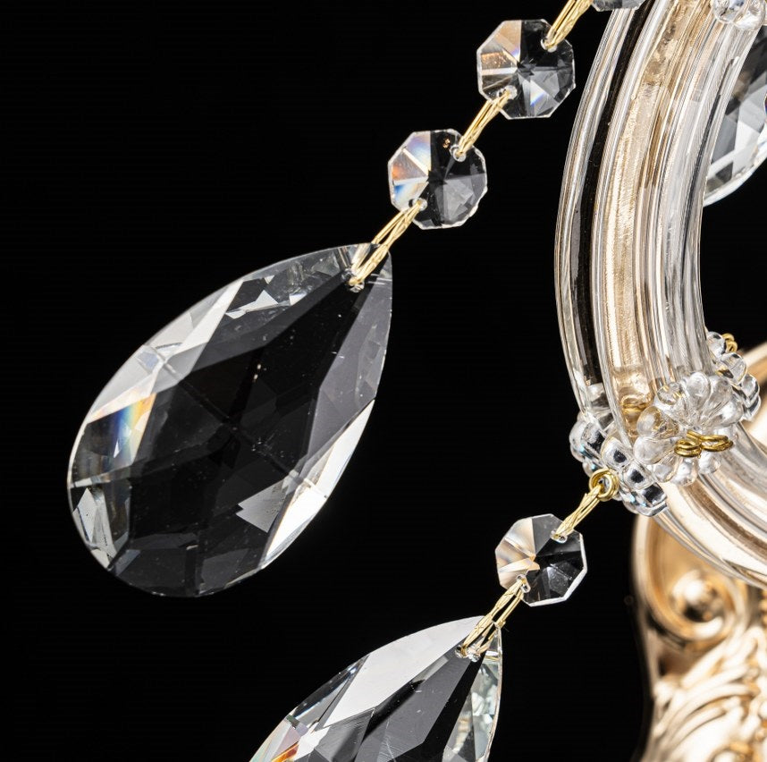 Cada lágrima de cristal está elaborada con cristal K9 de calidad superior, conocido por su claridad y su capacidad para reflejar la luz con intensidad. Estas piezas talladas con precisión aportan un toque refinado y luminoso, realzando la elegancia del aplique.