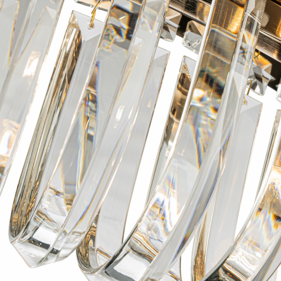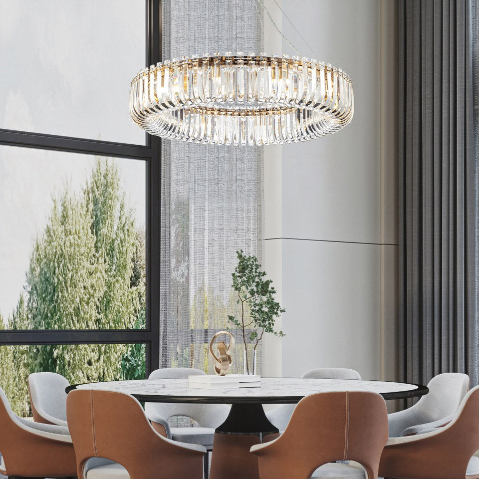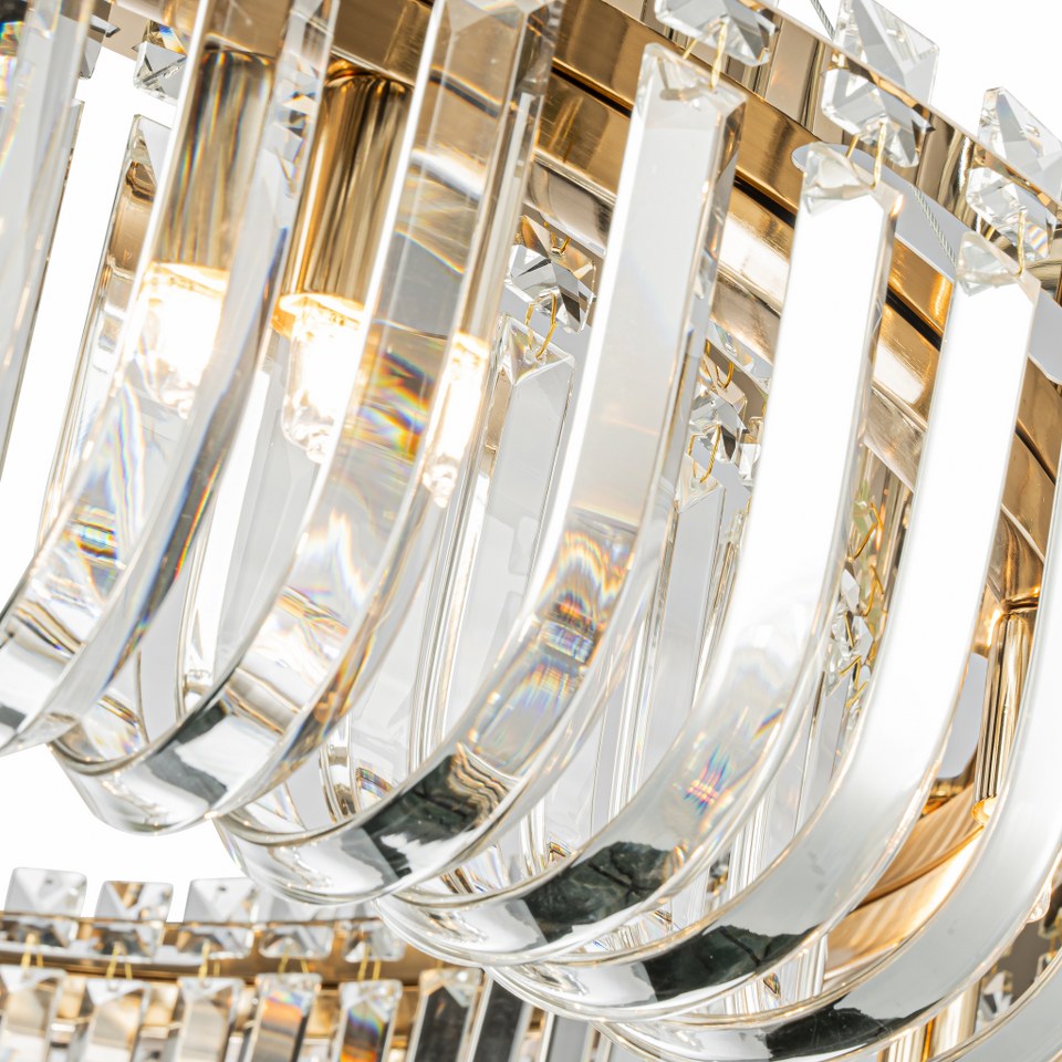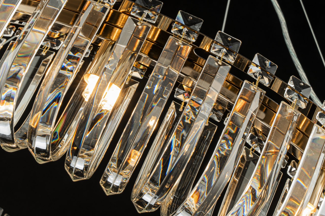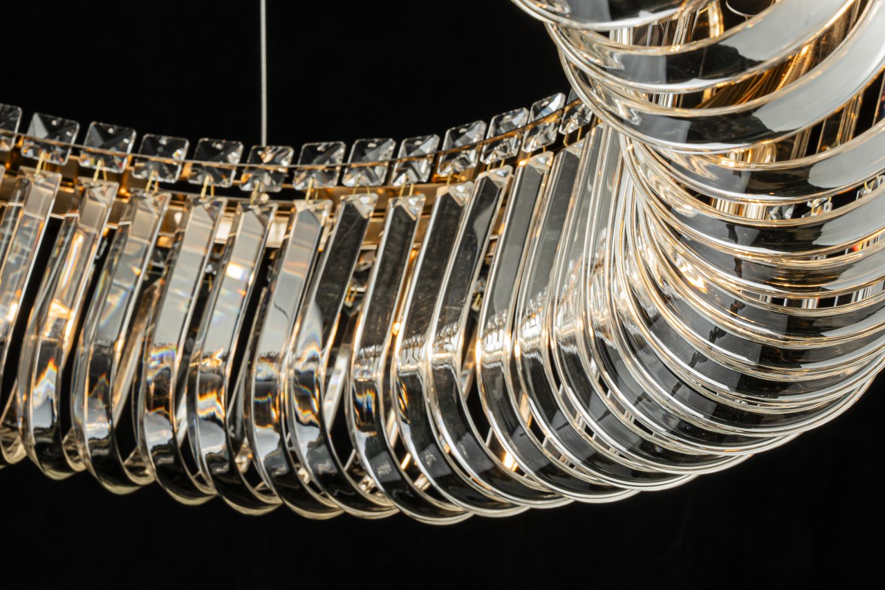 Cada pieza de esta lámpara está fabricada con cristal K9, reconocido por su transparencia, pureza y capacidad de reflejar la luz con una claridad excepcional. Este tipo de cristal se utiliza en iluminación de alta gama por su capacidad de crear destellos definidos, sin impurezas ni distorsiones.