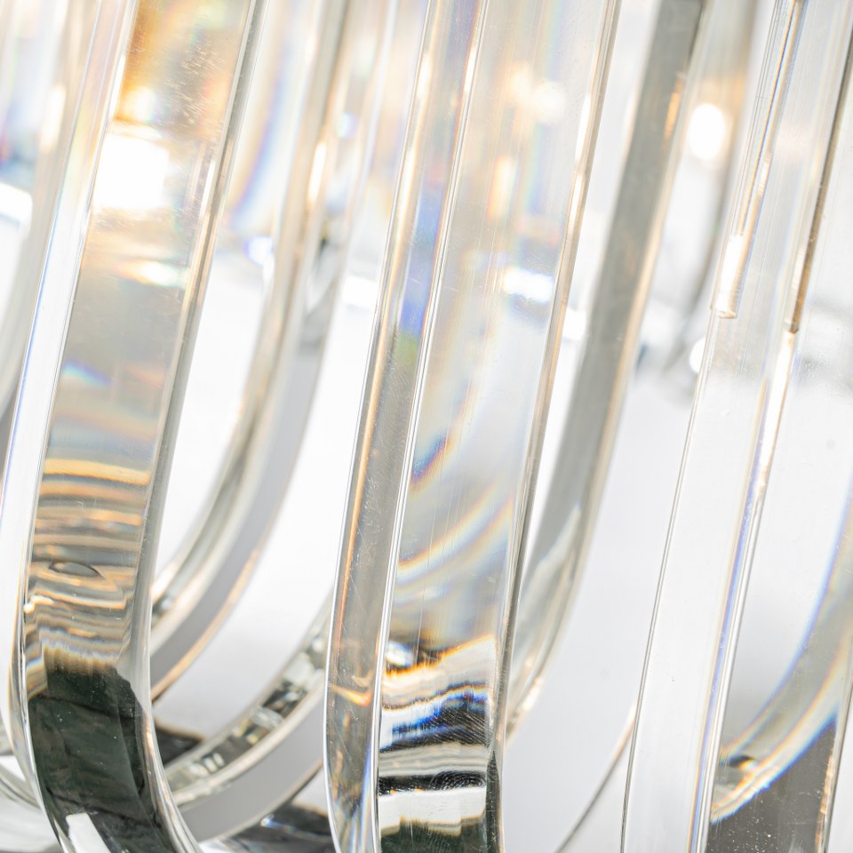 Cada pieza ha sido tallada y curvada para maximizar los reflejos, aportando profundidad, brillo y una sensación de lujo real al conjunto.