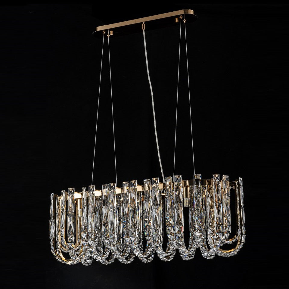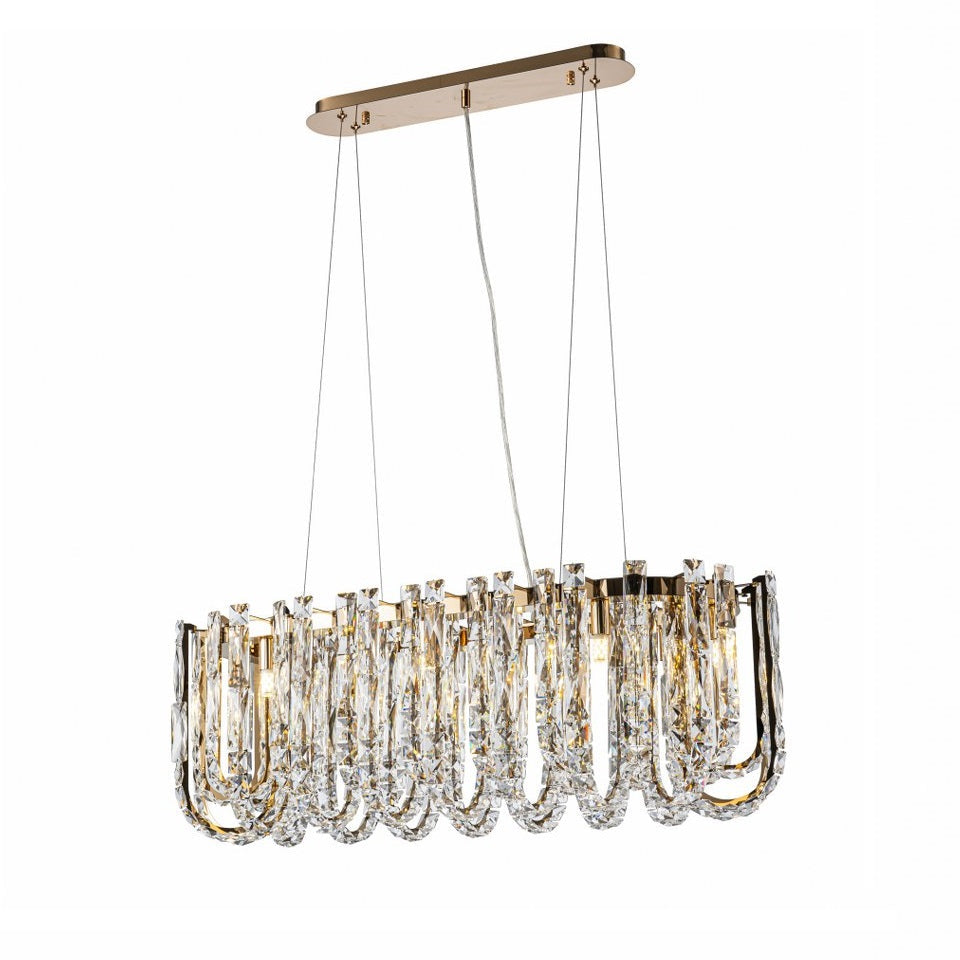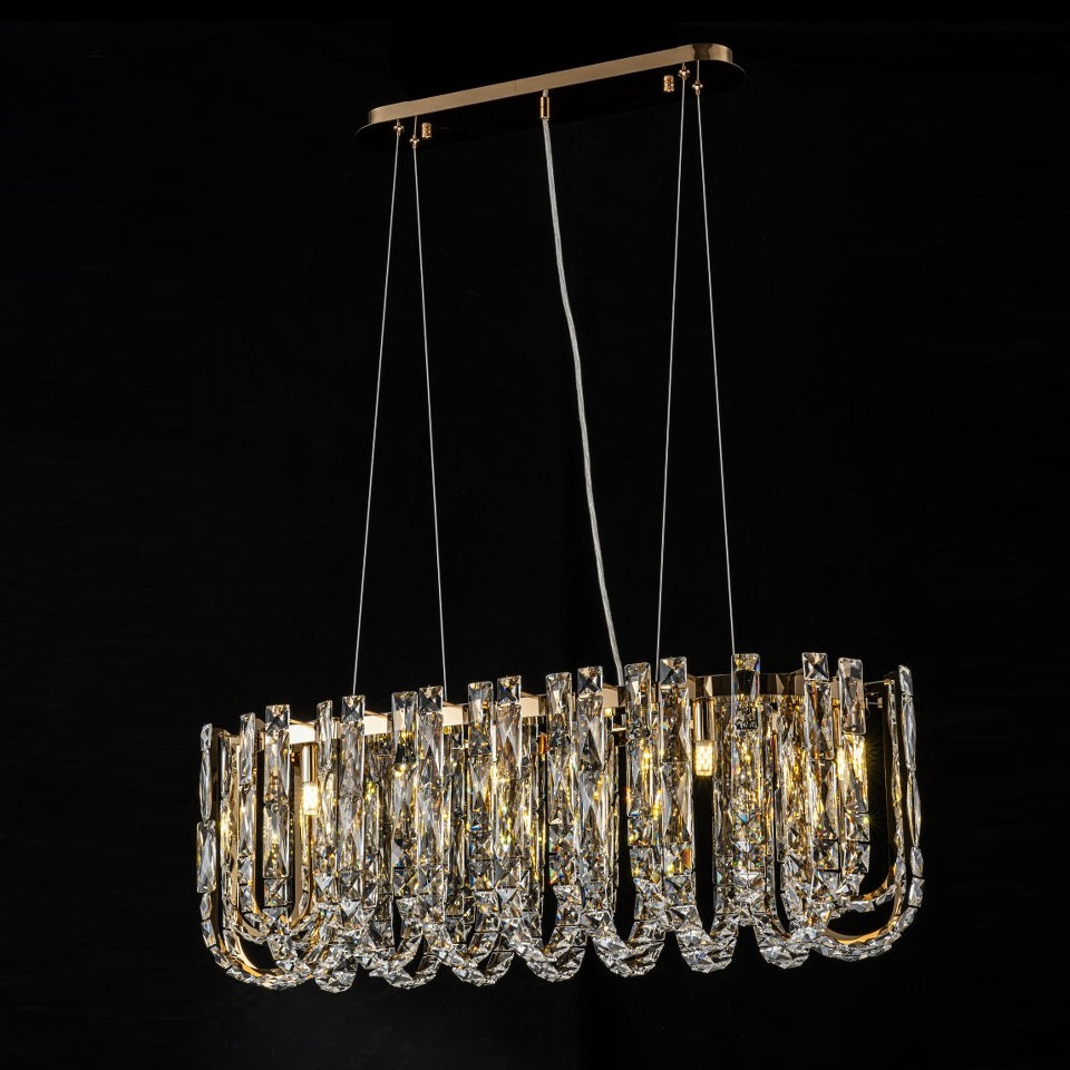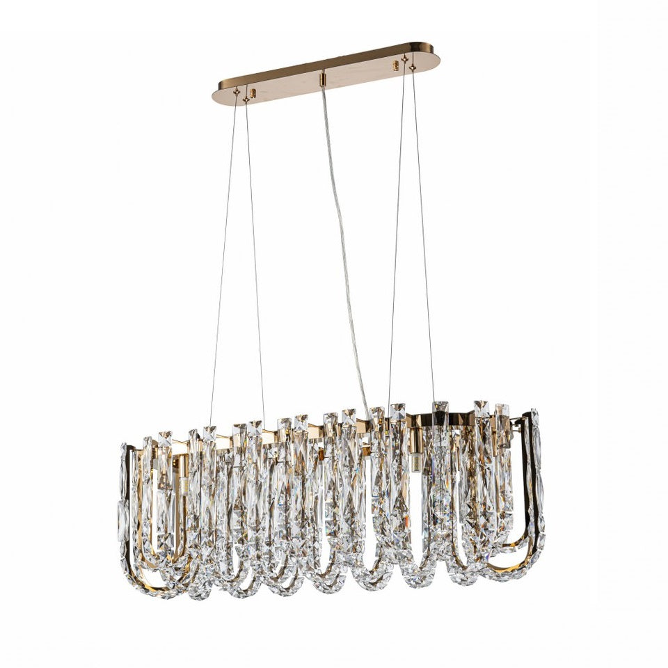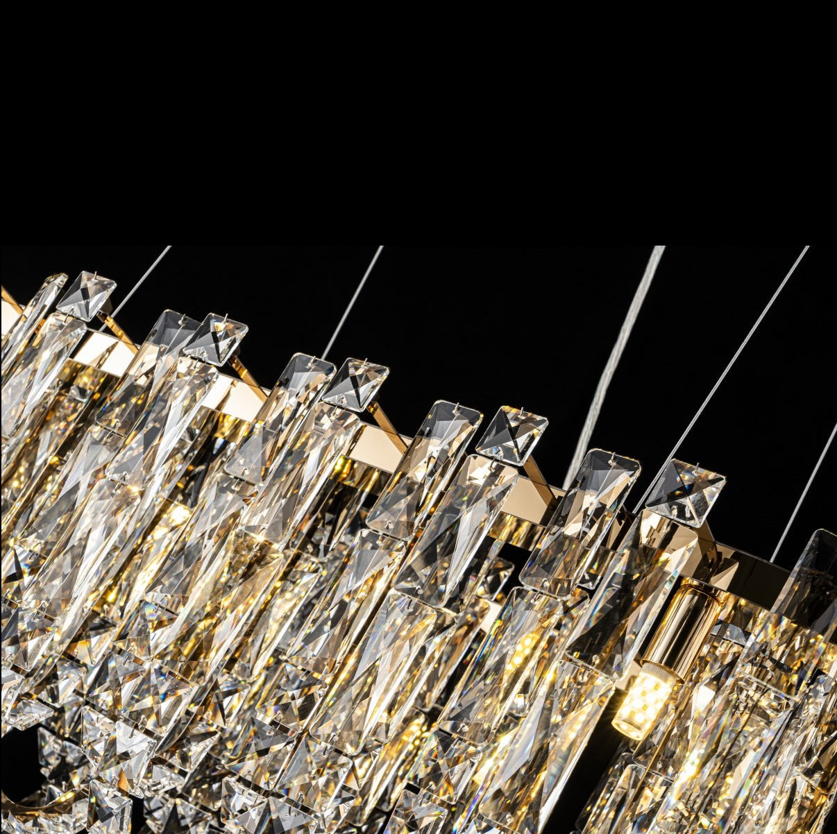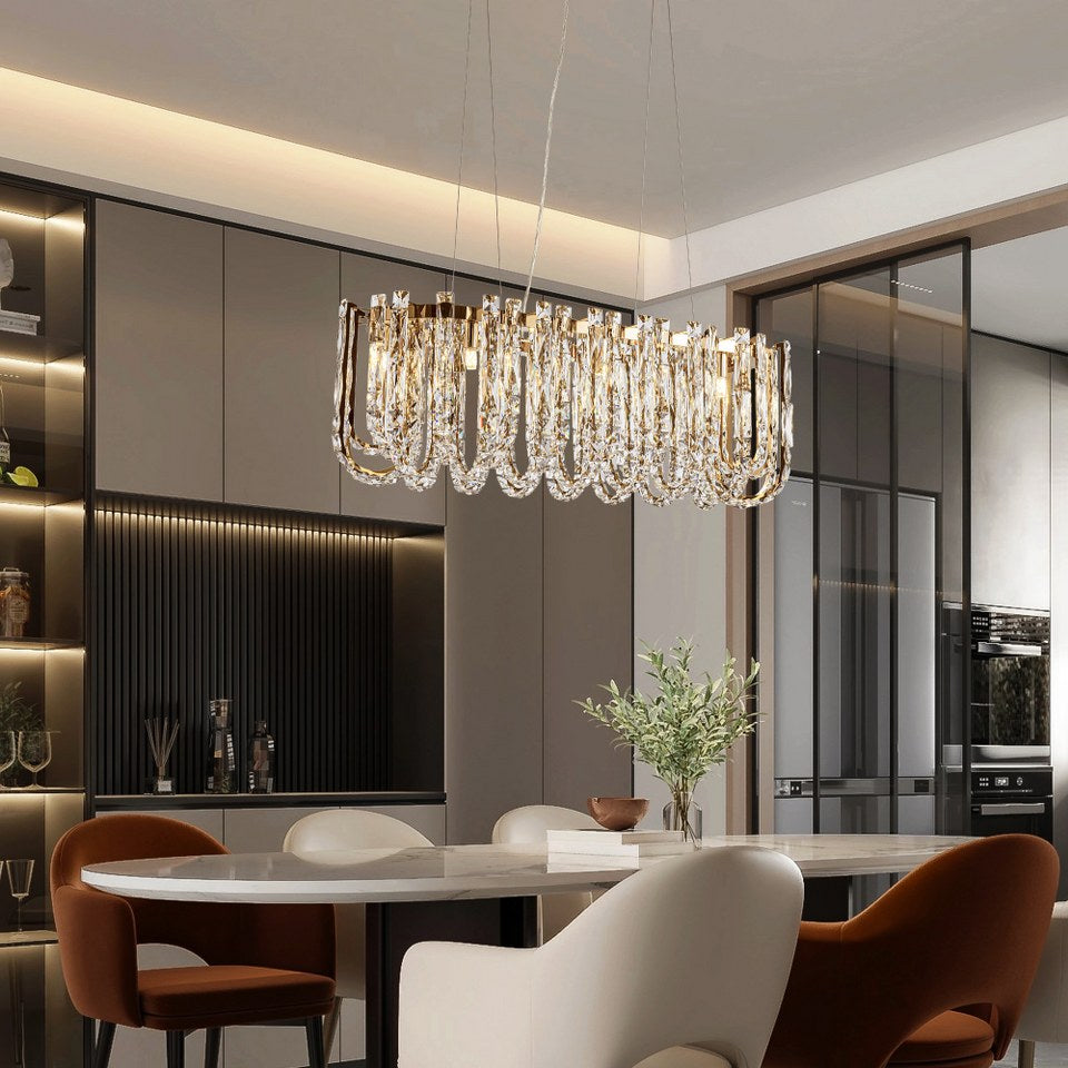 Este impresionante colgante de cristal transforma cualquier espacio con su diseño elegante y luminoso. Ideal para comedores modernos y refinados.