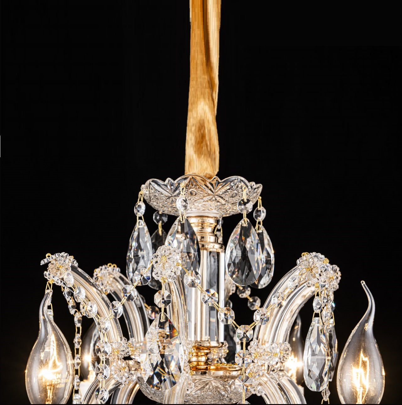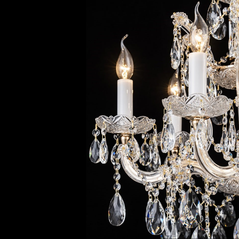 Cada lágrima de cristal está tallada con precisión para maximizar el brillo y la refracción de la luz. El cristal K9, conocido por su claridad y ligereza, aporta una elegancia atemporal al diseño, creando reflejos deslumbrantes incluso con iluminación tenue.