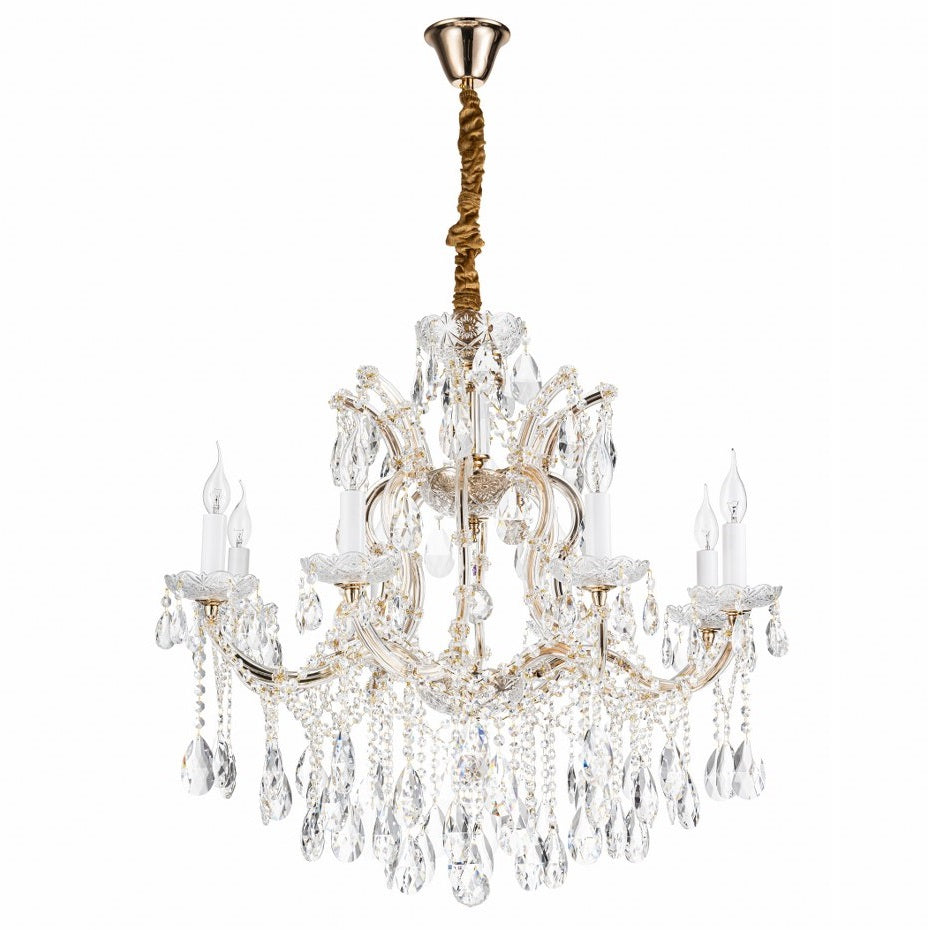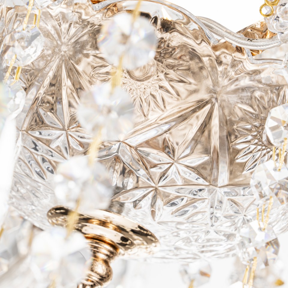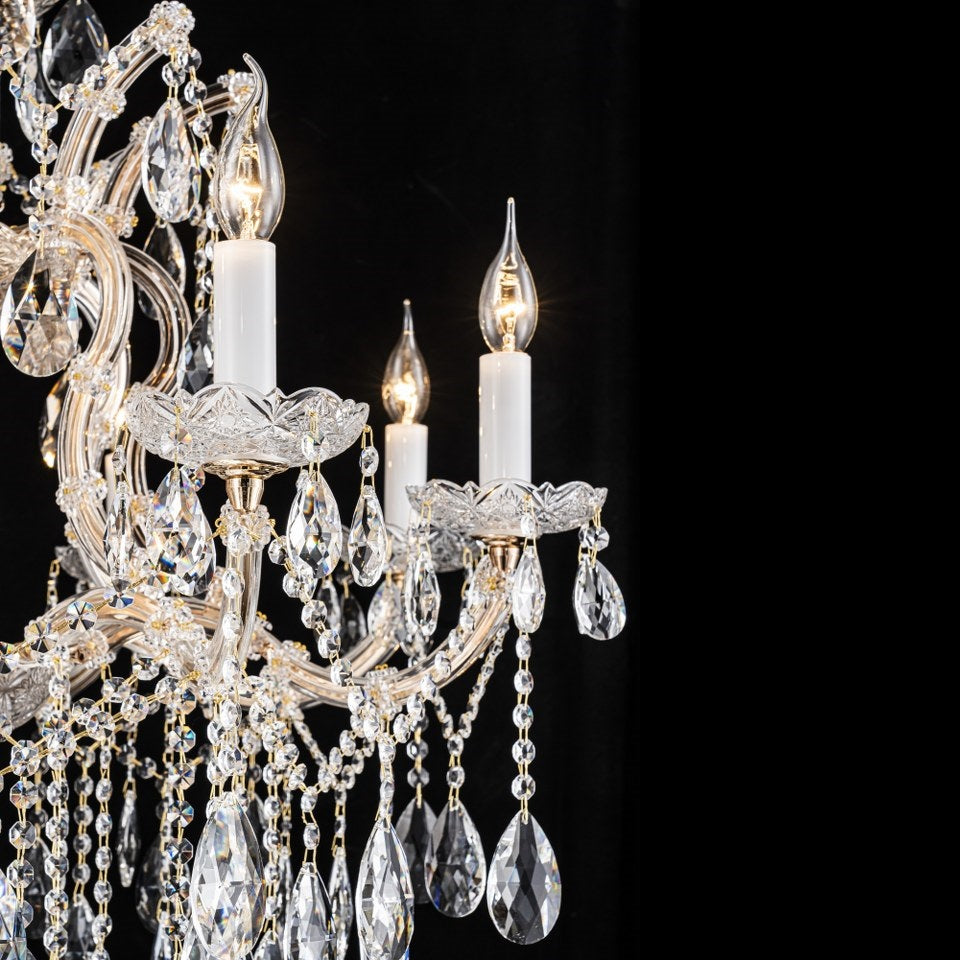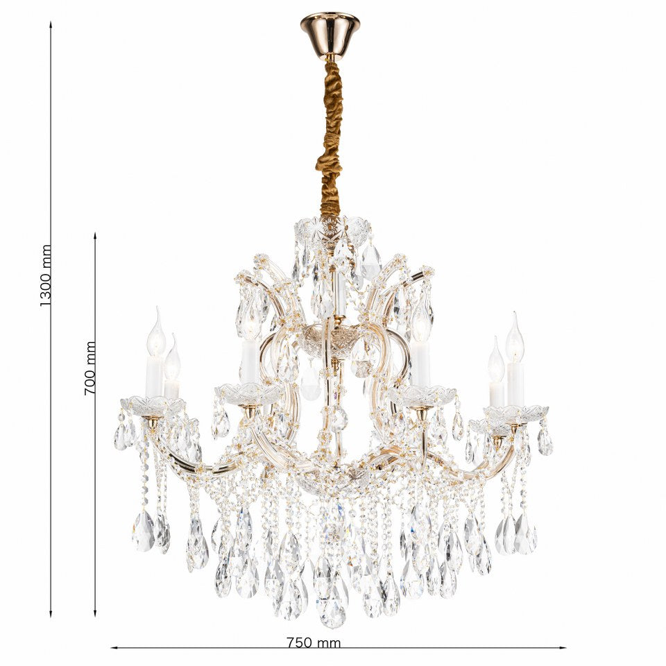 Esta lámpara de araña eleva la elegancia tradicional con un acabado dorado y formas armoniosas. Ideal para estancias con detalles arquitectónicos clásicos, su diseño aporta un aire refinado sin sobrecargar el espacio. La estructura y los cristales se integran con equilibrio, creando un punto focal sofisticado.