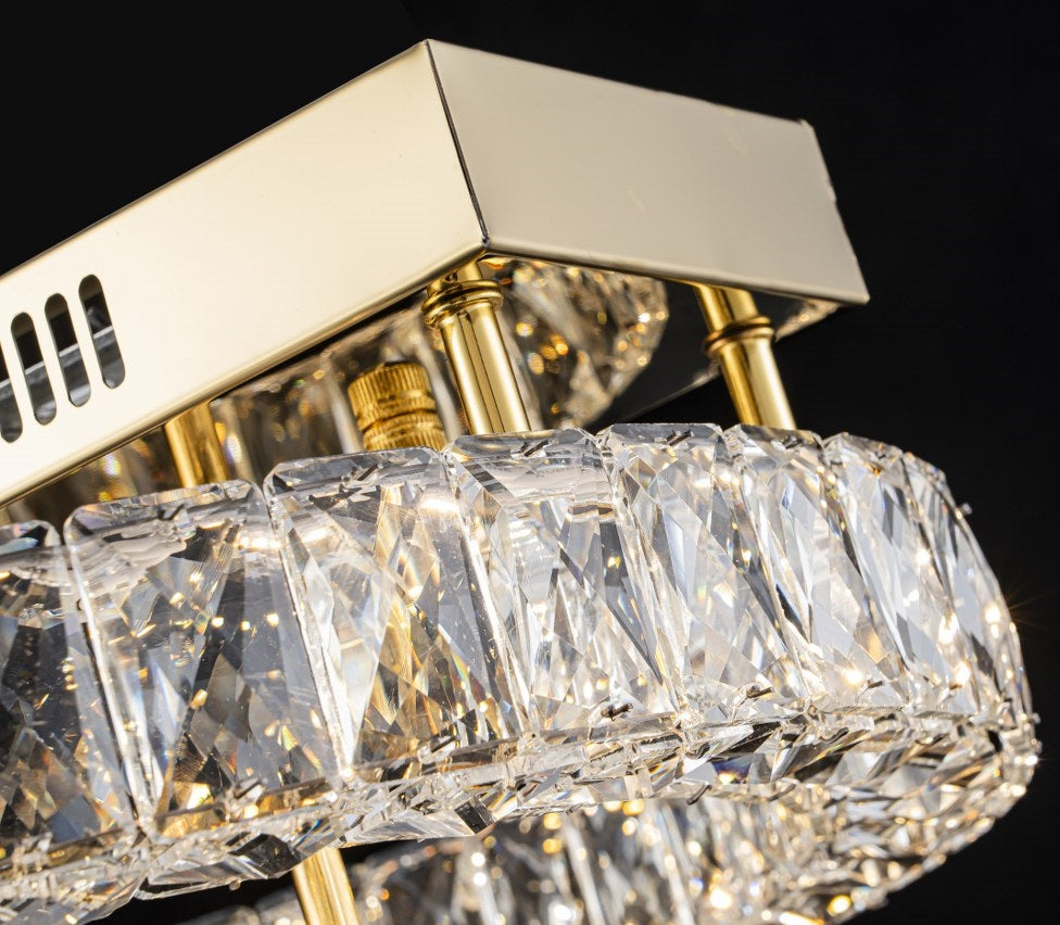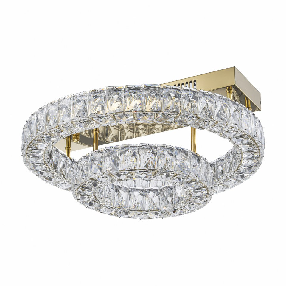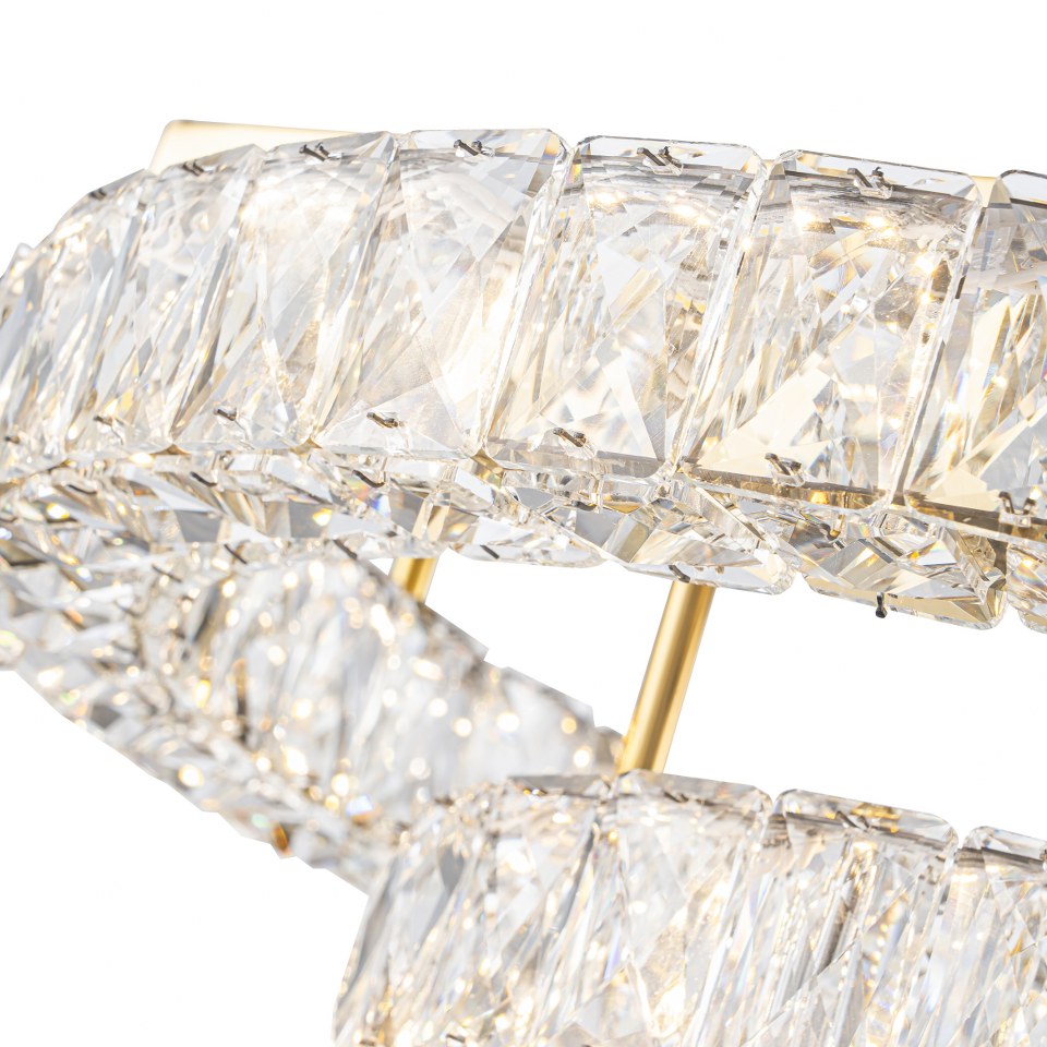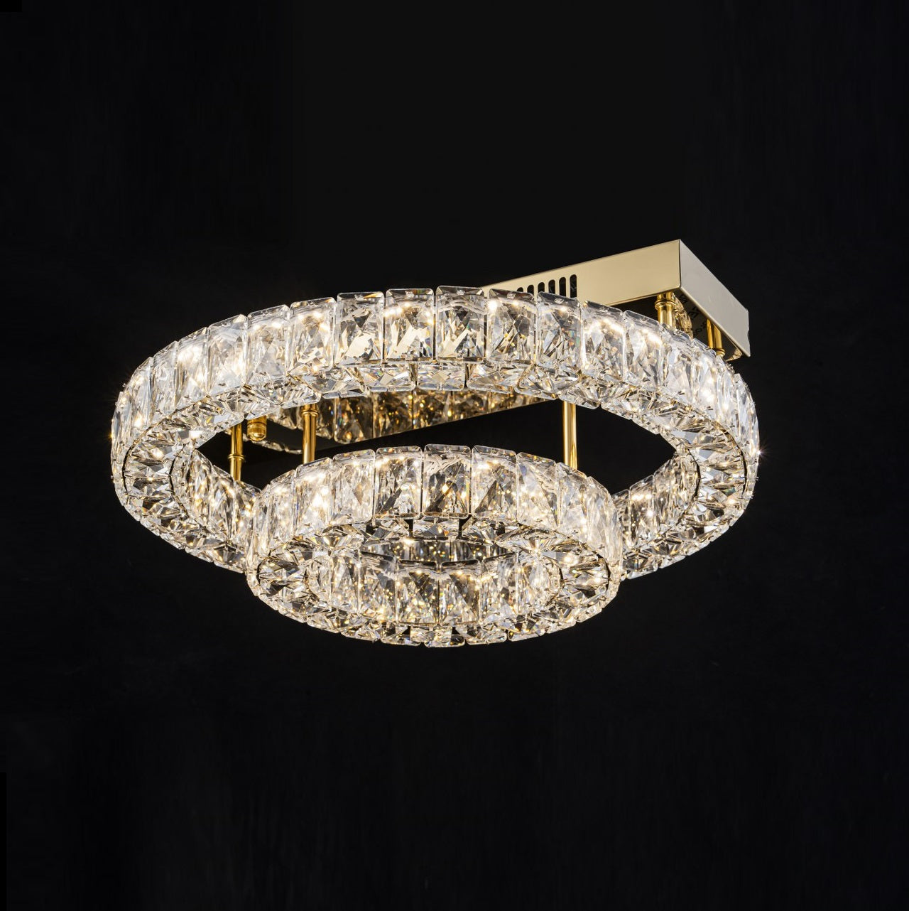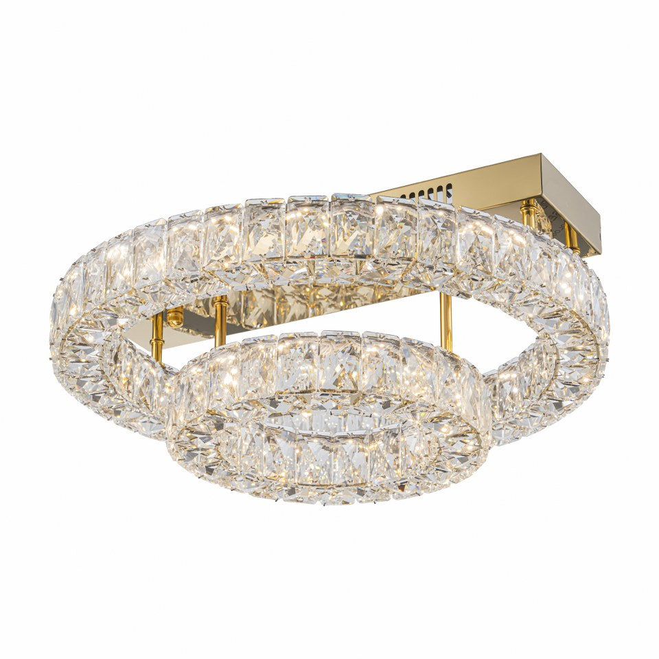 La lámpara Infinity de techo combina elegancia y modernidad con sus aros entrelazados de cristal tallado y acabado dorado. Ideal para salones sofisticados, aporta una luz cálida y regulable (3000K a 6000K) con mando a distancia y LED integrado. Su diseño escultural transforma cualquier espacio en un ambiente refinado y acogedor.